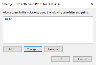 Aparecerá una ventana con la letra de la unidad actual, si la hay, y algunas opciones. Aquí quieres hacer clic Cambio(Cambio) .