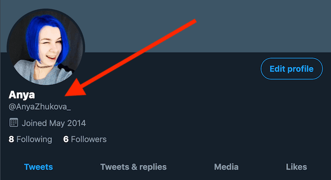 Para encontrar su identificador de Twitter , inicie sesión en su cuenta de (Twitter)Twitter y abra su página de perfil. Tu identificador es el nombre que comienza con el símbolo @, justo debajo de tu foto de perfil.