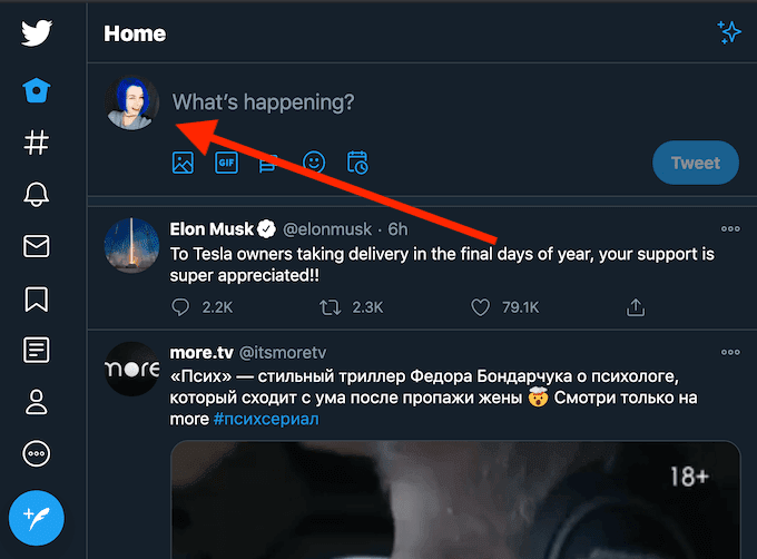 - En la esquina superior izquierda de la pantalla, seleccione su foto de perfil para abrir su página de perfil.