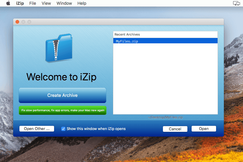 - Abre iZip y presiona crear un archivo(Crear archivo) .