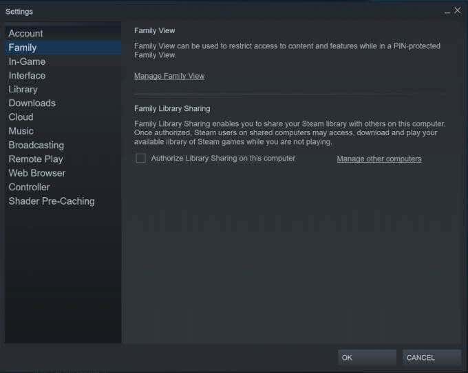 - Ve a Steam > Configuración(Settings) > Familia(Family) .