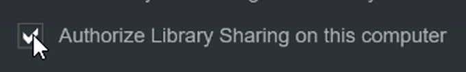 - Asegúrese de que Autorizar el uso compartido de bibliotecas(Authorize Library Sharing) en esta computadora esté marcado.
