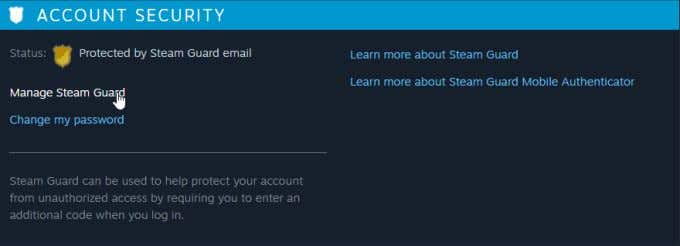 - Haga clic en su nombre de usuario y vaya a Detalles de la cuenta(Account Details) > Administrar Steam Guard(Manage Steam Guard) .