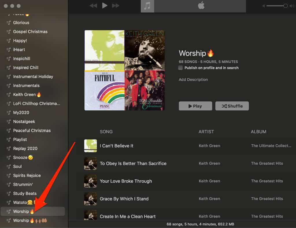 - Inicie la aplicación Música(Music) y seleccione la lista de reproducción(playlist) que desea compartir en la barra lateral izquierda.