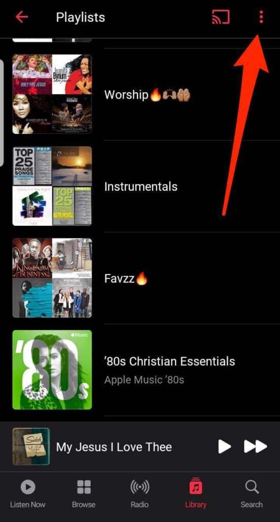 - Toca el Menú(Menu) (icono de tres puntos) y luego toca Compartir lista de reproducción(Share Playlist) .