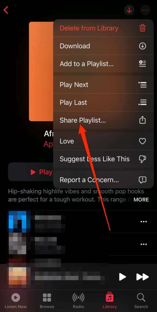 Si acaba de crear una nueva lista de reproducción(created a new playlist) o convirtió una lista de reproducción de Spotify en una lista de reproducción de Apple Music(converted a Spotify playlist to an Apple Music playlist) y desea compartirla con otros dispositivos o usuarios, Apple Music le brinda una manera fácil de hacerlo.