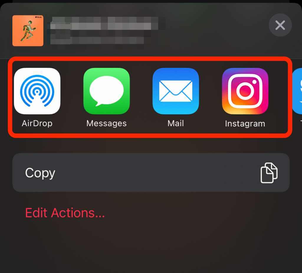 - Puede seleccionar la plataforma en la que desea compartir la lista de reproducción, como Mensajes(Messages) , correo electrónico, redes sociales y más. También puede compartir directamente con un contacto reciente o mediante AirDrop con otros dispositivos Apple cercanos.(Apple)