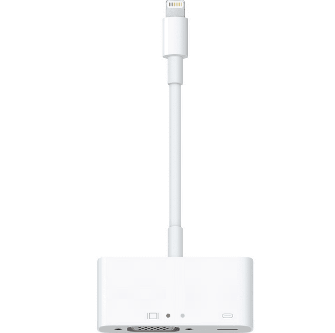 La mayoría de las personas tienen un iPhone 5 o más nuevo con un conector Lightning , pero para salidas HDMI o conexiones (HDMI)VGA , necesita un adaptador AV digital Lightning(Lightning digital AV adapter) o un adaptador Lightning a VGA,(Lightning to VGA adapter) respectivamente.