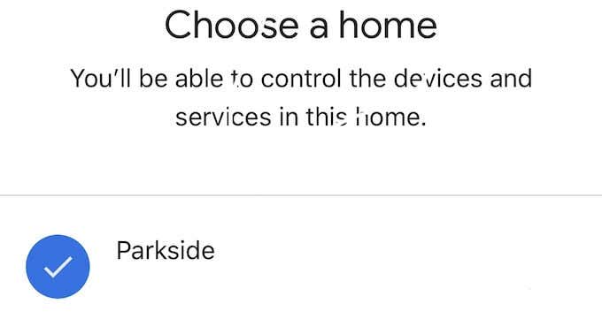 - Se le pedirá que seleccione la casa donde se instalará el dispositivo. Si nunca has creado direccion de casa(direccion de casa) dentro de Asistente de Google(Asistente de Google) sigue las instrucciones para configurar tu hogar.