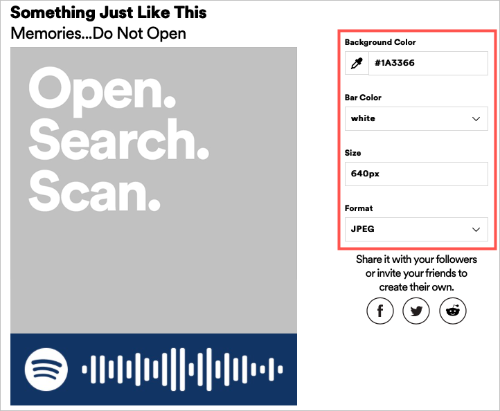 Aunque es fácil obtener el código con la aplicación móvil Spotify , también puedes crearlo en la web donde puedes personalizarlo. ¡Sí, lo es! Puede crear una imagen de alta resolución seleccionando el color de fondo, el color de la barra, el tamaño de la imagen y el formato de su código. Spotify.
