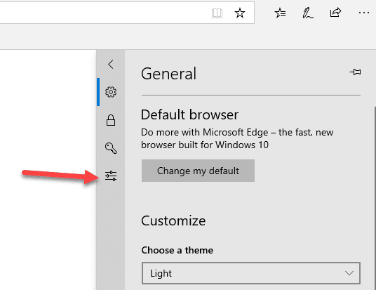 En la última versión Borde tienes que hacer clic en el nuevo Botón avanzado(botón avanzado) que aparece en Borde izquierdo(Borde izquierdo) panel.