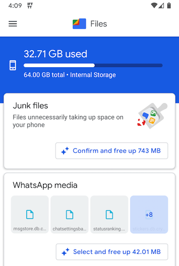 Hay varias opciones de limpieza de archivos basura para dispositivos Android , incluida la propia aplicación Archivos de Google(Google’s own Files app) . Dentro de Archivos hay una sección llamada Limpiar(Clean) que puede ayudar a liberar los archivos multimedia que ha enviado y recibido dentro de las aplicaciones de mensajería, pero que probablemente ya no desee; se sorprendería de la cantidad de basura que se puede recopilar allí.