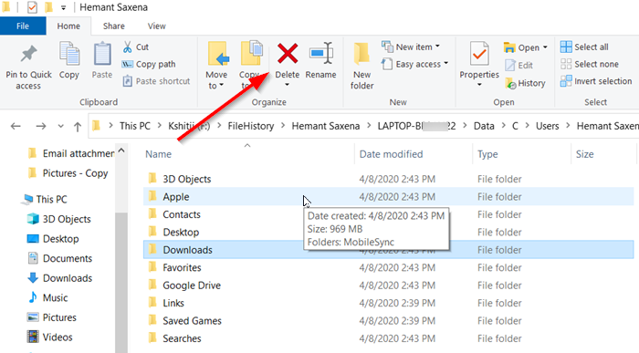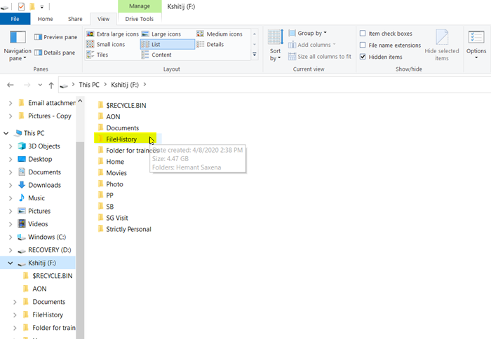 Historial del archivo(Historial del archivo) en Ventanas 11/10 copias de seguridad regulares de las versiones de los archivos en esta computadora y los archivos a OneDrive disponible fuera de linea. Con el tiempo, este proceso acumula su historial de archivos, pero todos son necesarios. En tales casos, puede eliminar manualmente los archivos innecesarios. Aquí está el procedimiento para ello.