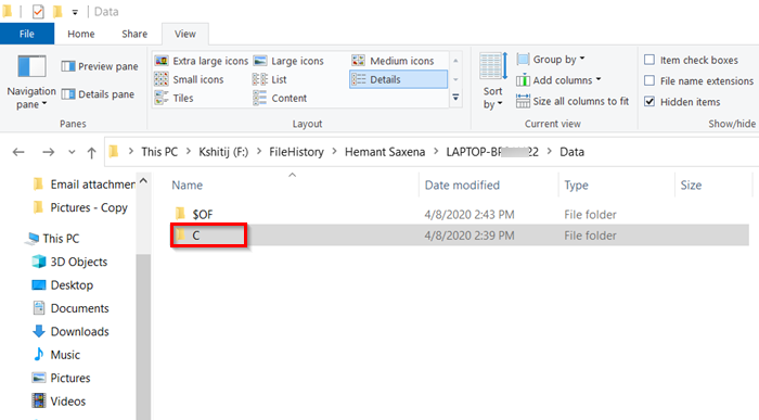 - Acceda a la carpeta Historial de archivos