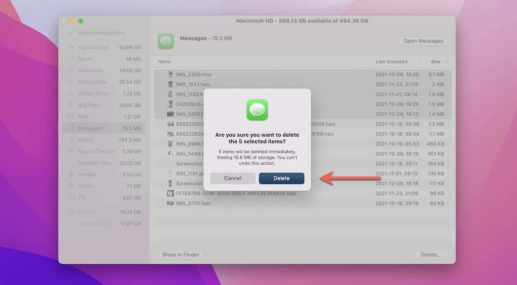 Si solo está buscando ahorrar espacio en su Mac(save space on your Mac) eliminando archivos adjuntos grandes de iMessage, deje de perder el tiempo investigando hilos de conversación en Mensajes(Messages) . En su lugar, use la aplicación Storage Management en macOS para eliminarlos rápidamente del almacenamiento local.