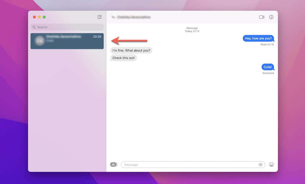 Puede eliminar cualquier texto de SMS o iMessage de los hilos de conversación en la aplicación Mensajes(Messages) de su Mac . Lo mismo se aplica a los archivos adjuntos: videos, imágenes, enlaces, etc. También puede seleccionar y eliminar varios mensajes simultáneamente para acelerar las cosas.