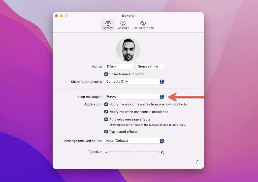 De manera predeterminada, la aplicación Mensajes(Messages) en tu Mac guarda los textos y archivos adjuntos de iMessage indefinidamente. Sin embargo, es posible indicarle a la aplicación Mensajes(Messages) que elimine sus mensajes después de un período definido. Eso evita la acumulación de desorden y ayuda a conservar espacio en disco.
