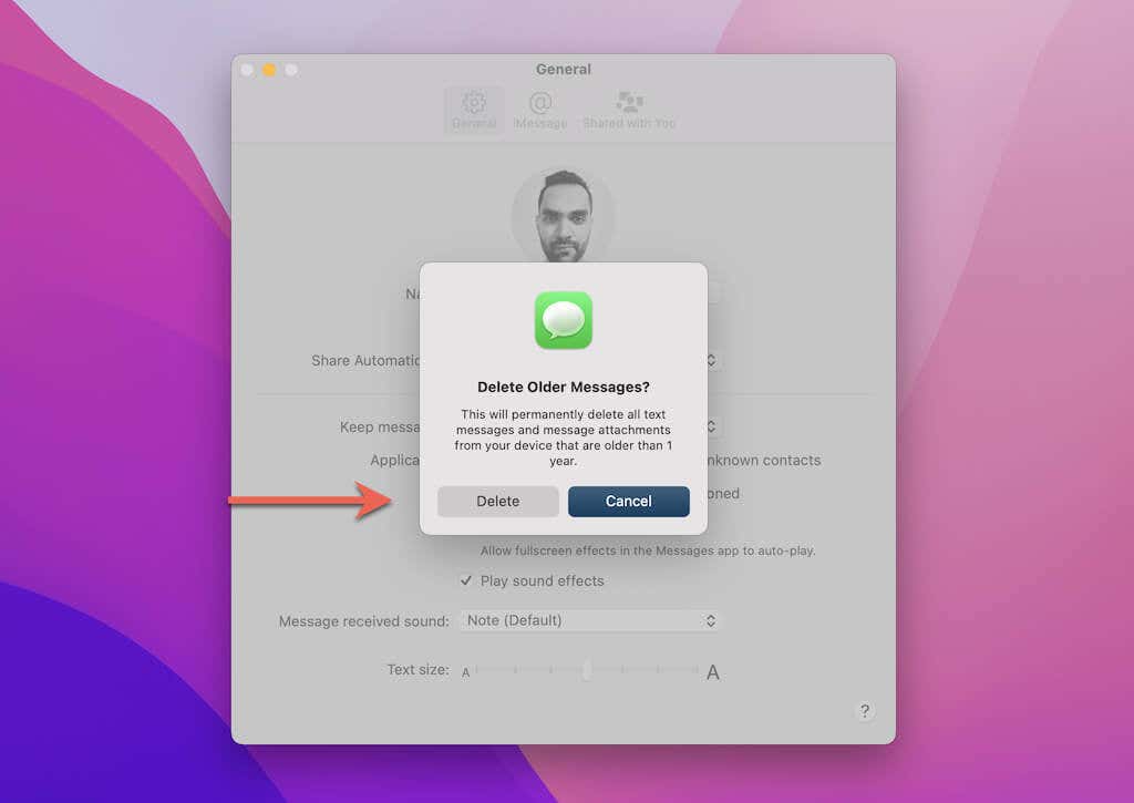 4. ¿En la pantalla Eliminar mensajes antiguos? (Delete Older Messages?)ventana emergente que luego aparece, seleccione Eliminar(Delete) .