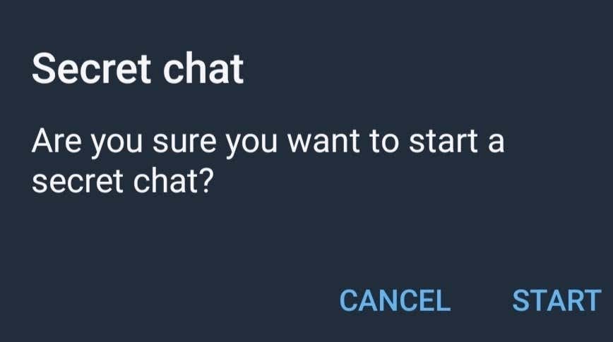 Si lo que busca es privacidad total, considere usar chats secretos en Telegram en lugar de los chats normales en la nube. Para abrir un chat secreto con alguien, seleccione su nombre de usuario en Telegram , luego seleccione Más(More) (tres puntos verticales en la esquina superior derecha) > Iniciar chat secreto(Start Secret Chat) .