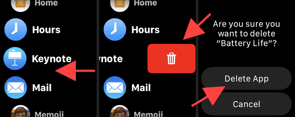 Si configuró la pantalla(Home Screen) de inicio de su Apple Watch para que aparezca en la vista de lista(List View) , debe seguir un procedimiento ligeramente diferente para eliminar aplicaciones.