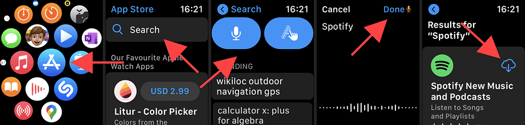 Siempre puede buscar e instalar aplicaciones complementarias manualmente a través de la App Store de Apple Watch .
