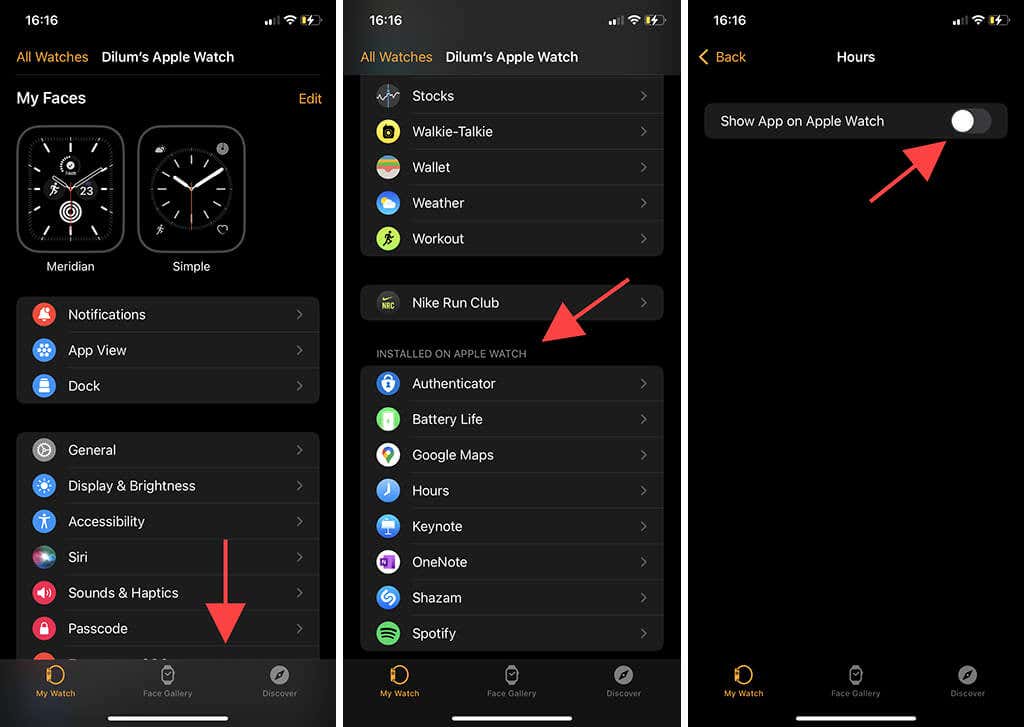 3. Desplácese(Scroll) hacia abajo en la pantalla hasta llegar a la sección Instalado en Apple Watch(Installed on Apple Watch ) .