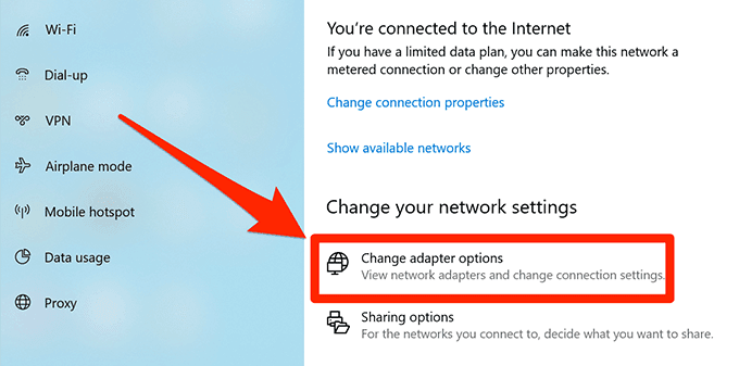 - En la siguiente pantalla, haz clic en la opción que dice Cambiar opciones de adaptador(Change adapter options) . Eso sí, no vas a cambiar nada.