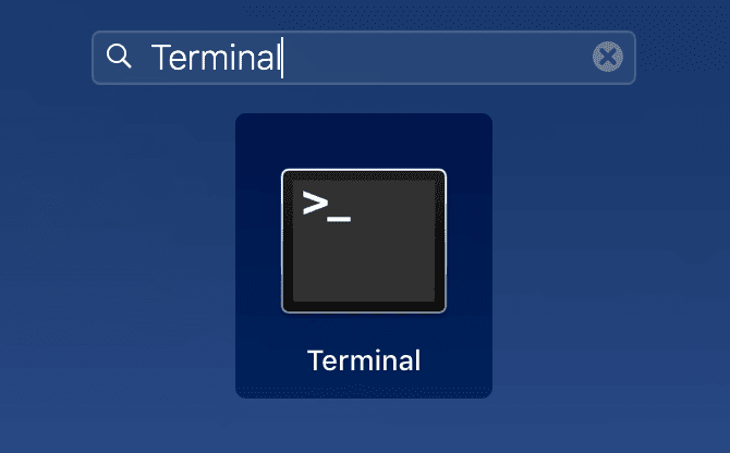 - Haga clic en Launchpad en el Dock, busque Terminal y haga clic en él para abrirlo.