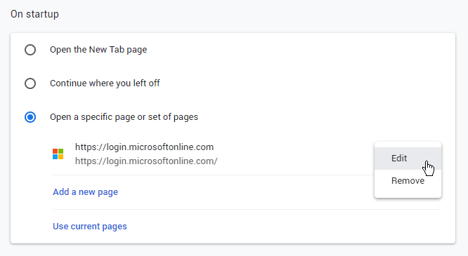 Abre Google Chrome y ve a Personalizar(Personalizar) > Ajuste(Ajustes) . Desplácese hacia abajo y localice Al principio . Elegir Abrir una página específica o un conjunto de páginas(Abrir una página específica o conjunto de páginas) .