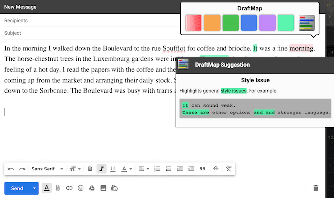 Puede encontrar muchas herramientas excelentes para ayudarlo a escribir mejor y, por lo tanto, reducir el tiempo que dedica a navegar y escribir correos electrónicos. Bosquejo del mapa Este es uno de ellos. Pensar en Gramática o Hemingway(Gramática o Hemingway) además de la verificación repetición innecesaria de palabras(repetición de palabras) y ayuda con el mantenimiento estilo de escritura(estilo de escritura) .