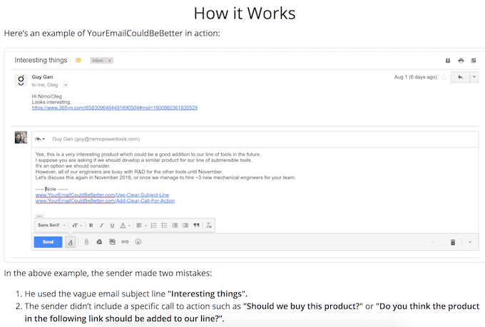 Su correo electrónico puede ser mejor(Mejor) es una herramienta en línea diseñada para reducir el tiempo dedicado a administrar el correo electrónico al educar a todos sobre las mejores prácticas de correo electrónico.