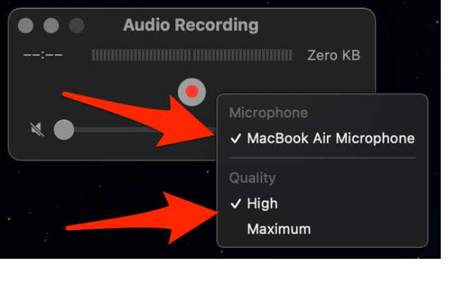 - Luego, ajusta el control de volumen para que puedas escuchar el audio que estás grabando. También puede hacer esto usando la barra táctil(Touch Bar) en el teclado de su Mac.