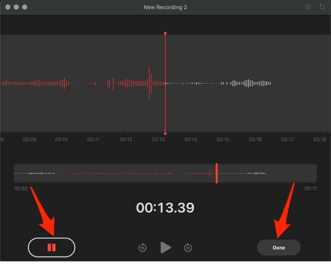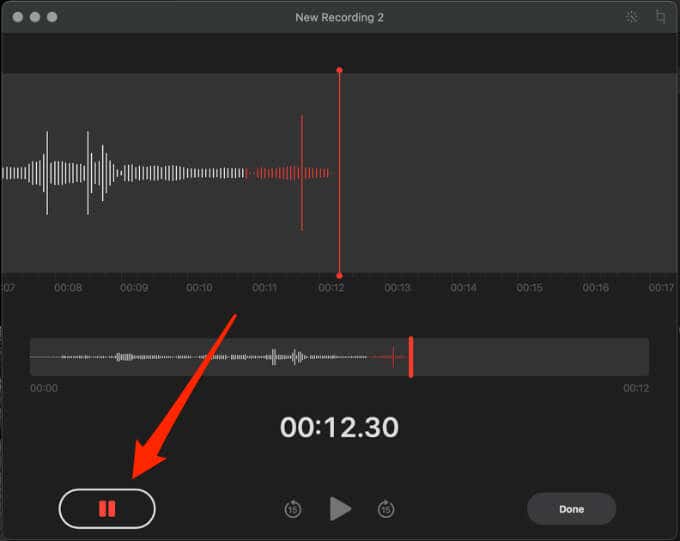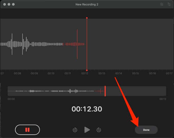 - Seleccione Pausa(Pause) cuando termine de grabar y luego seleccione Listo(Done) para guardar su grabación.