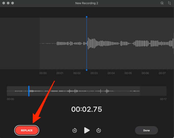 - A continuación, seleccione Reemplazar(Replace) para volver a grabar sobre la nota de voz existente.