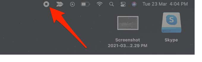 - Seleccione Detener(Stop) en la barra de menú o presione Command+Control+Esc para detener la grabación.