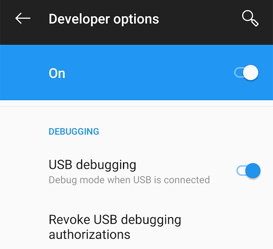 - Dirígete a Settings > Developer options en tu dispositivo Android(Android device) y habilita la opción de depuración USB .(USB debugging)