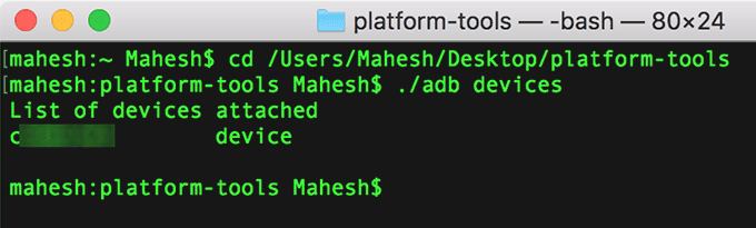 - Verás tu dispositivo en la lista. A continuación(Next) , escriba el siguiente comando y presione (command and press) Entrar(Enter) .