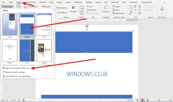 - También puede obtener más portadas haciendo clic en Más portadas de Office.com(Más portadas de Office.com) .