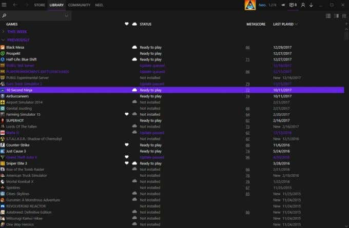 Esta piel, como su nombre lo indica, le da al cliente Vapor muy minimalista que le brinda fácil acceso a las funciones más importantes para iniciar y jugar sus juegos. Si desea una versión más simplificada del Vapor eso es exactamente lo que hará. También tiene un bonito esquema de colores oscuros que se suma al diseño general.
