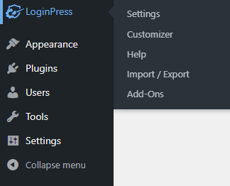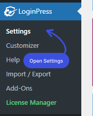 Recuerde: cada vez que active cualquiera de los complementos de LoginPress, se agregará justo al lado de esta pestaña de Configuración.