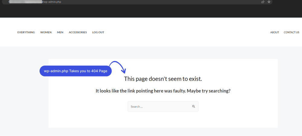 Ahora, si alguien intenta ir a la URL predeterminada de la página de inicio de sesión de WordPress, ese usuario será redirigido automáticamente a una página 404. Dado que no hay una página de inicio de sesión predeterminada, su página de inicio de sesión de WordPress está protegida por fuerza bruta.