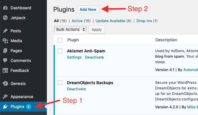 Para instalar y activar el complemento Tao Schedule Update, vaya a Complementos en la barra lateral izquierda, luego seleccione Agregar nuevo en la parte superior.