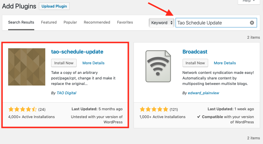 los Actualización del horario de Tao El complemento de WordPress es una solución de actualización de contenido simple y gratuita. Es mejor usarlo si solo tiene una ronda de actualización de su contenido; verá por qué al final de este artículo.