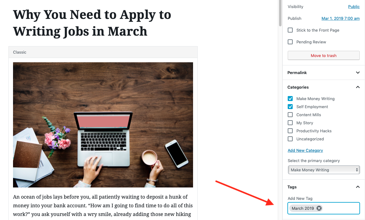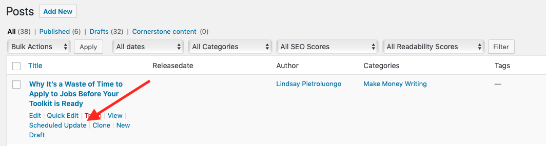 Esto crea una copia de su publicación de blog original, que luego puede editar y programar para una fecha y hora posteriores. Así es como se veía la publicación original del blog antes de editarla: