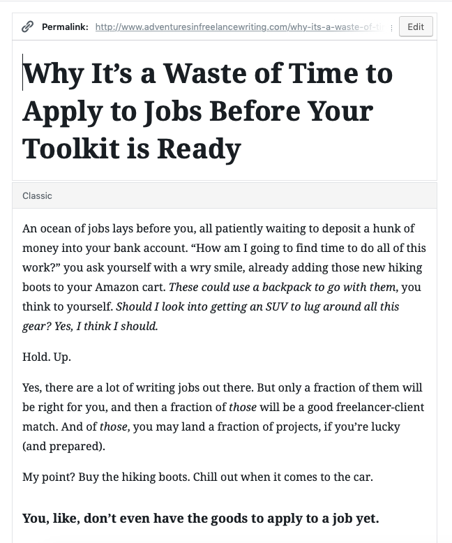 Quería divertirme un poco más editando una publicación ya actualizada y decidí comenzar de nuevo. Elegí una publicación de blog que estaba en mi sitio e hice algunos cambios.