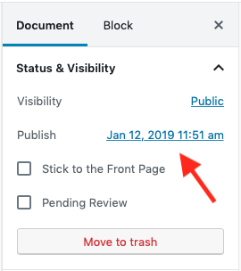 Haga clic en la fecha y la hora a la derecha de Publicar, en el lado derecho de la pantalla.