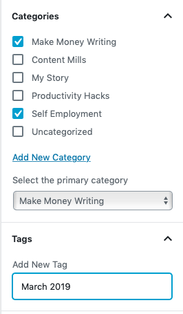 También verifiqué la categoría Trabajo por cuenta propia y agregué la etiqueta: