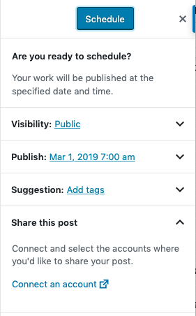 Agregué la etiqueta nuevamente y luego hice clic en Programar. Falló otro la versión de la publicación del blog que me entusiasmaba; acabo de actualizar la que estaba trabajando.