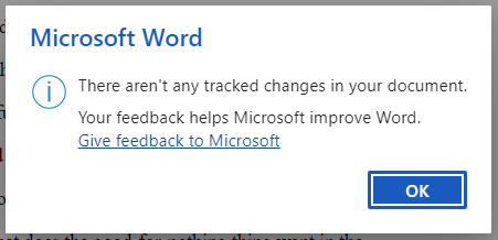 Microsoft Word para escritorio(Desktop) le informará una vez que haya terminado de revisar los cambios sugeridos.