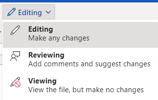 - Cambie a Edición(Editing) o Visualización(Viewing) en el menú Modo(Mode Menu) . Elija(Choose) Edición si desea continuar editando el documento y Visualización si desea ver el documento pero no realizar cambios.